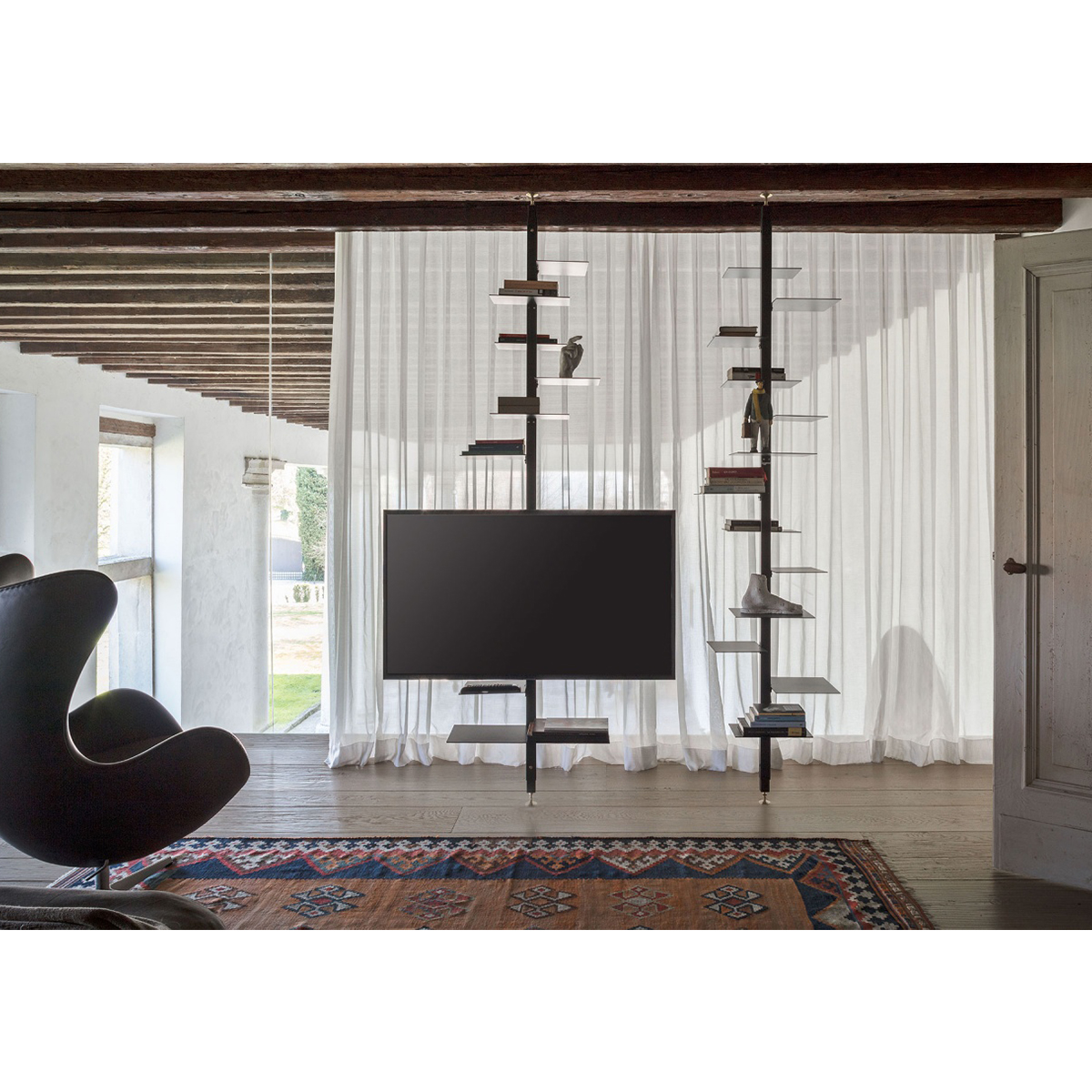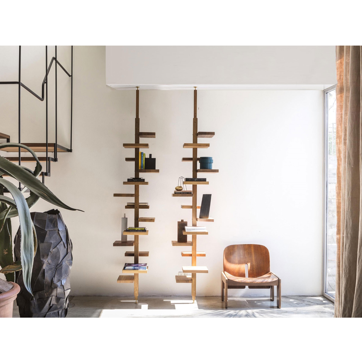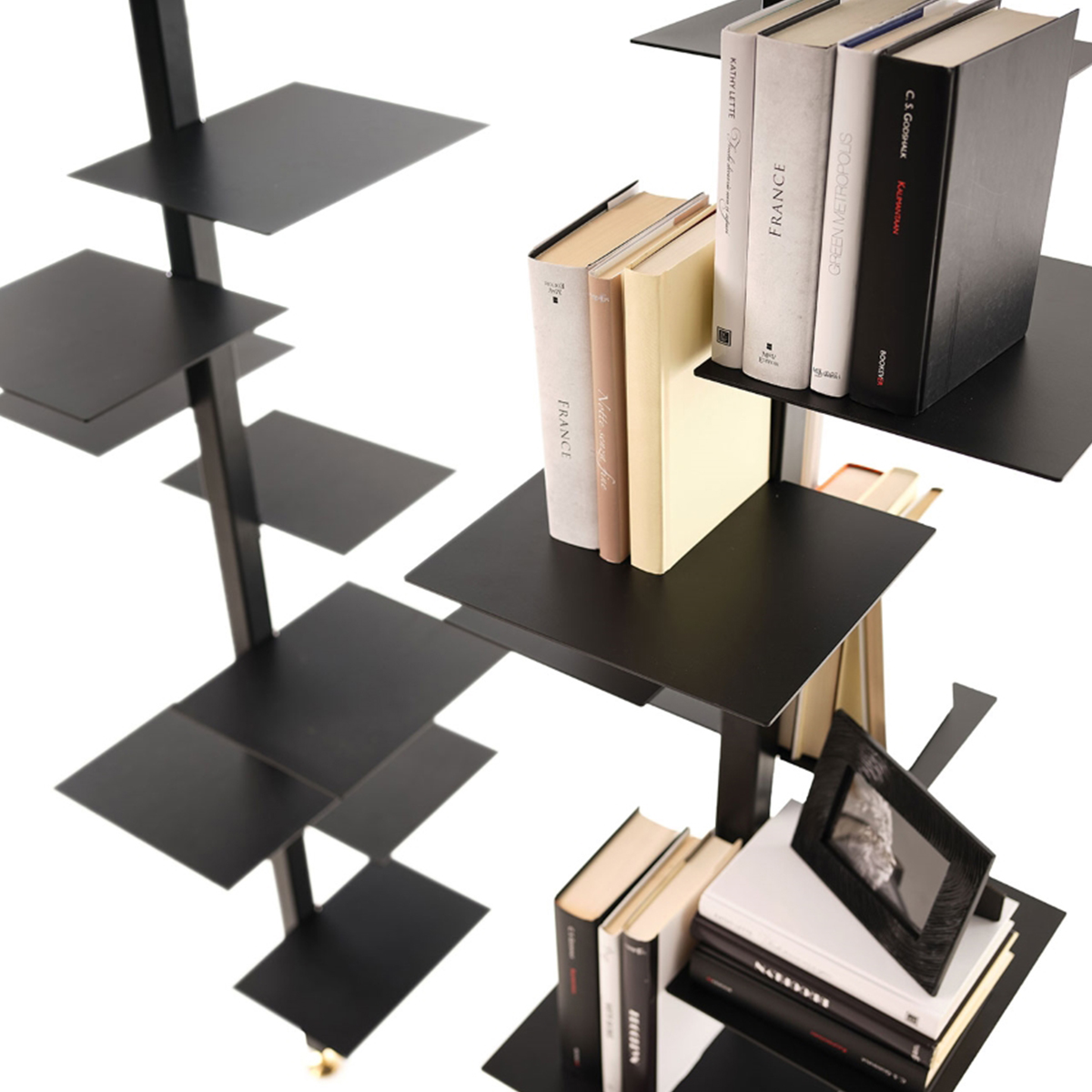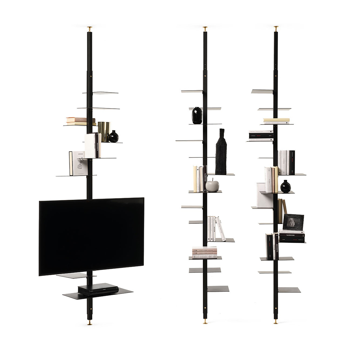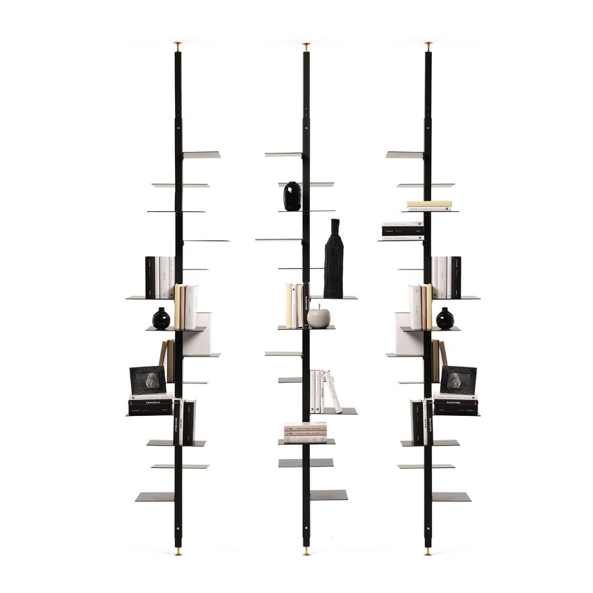 UusiAdelaide on elegantti lattiasta kattoon ulottuva kirjahylly mattamustasta metallista tai ikoro-petsauksella käsitellystä saarnista, Ylä- ja alaosan mekanismit ovat messinkiä. Hyllyssä on neliönmuotoinen pyörivä pylväs, johon on kiinnitetty epäsymmetrisesti neljältä sivulta kahta eri kokoista hyllyä (20x30 cm, 25x30 cm), yhteensä 13 kappaletta. Hylly pingotetaan lattian ja katon väliin, kattokorkeus 236 cm... Lue lisää