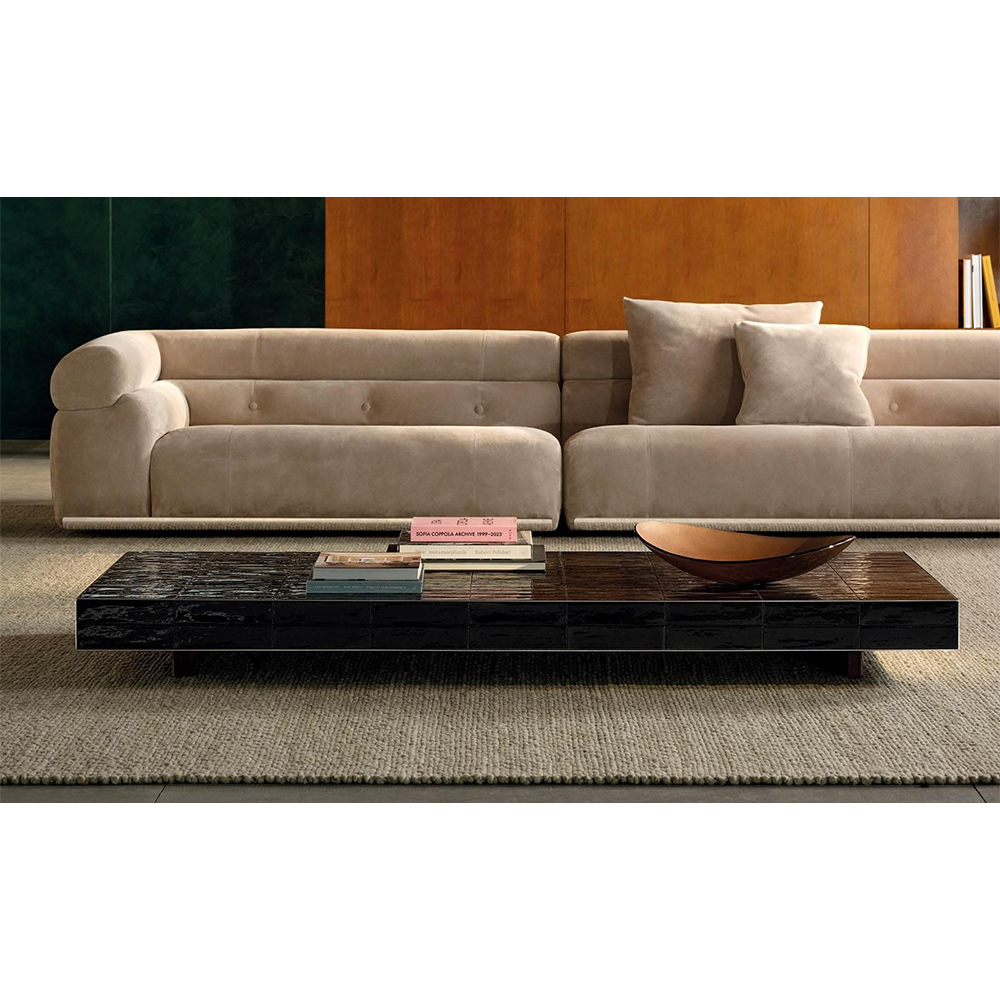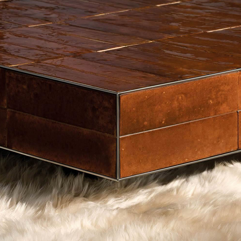 Hannes Peerin suunnittelema Andrée-sohvapöytä on 1970-luvun Milanon arkkitehtuurista inspiroitunut kokoelma suorakaiteen ja neliön muotoisia pöytiä, jotka tuovat tilaan persoonallisuutta ja koristeellista ilmettä. Tarkka geometria yhdistyy lasitetun keraamisen laatan elävään tekstuuriin, joka heijastaa valoa kauniisti ja tuo tilaan lämpöä sekä käsityöläistä tuntua. Saatavana useissa sävyissä, jotka heijastavat aikakauden värimaailmaa.