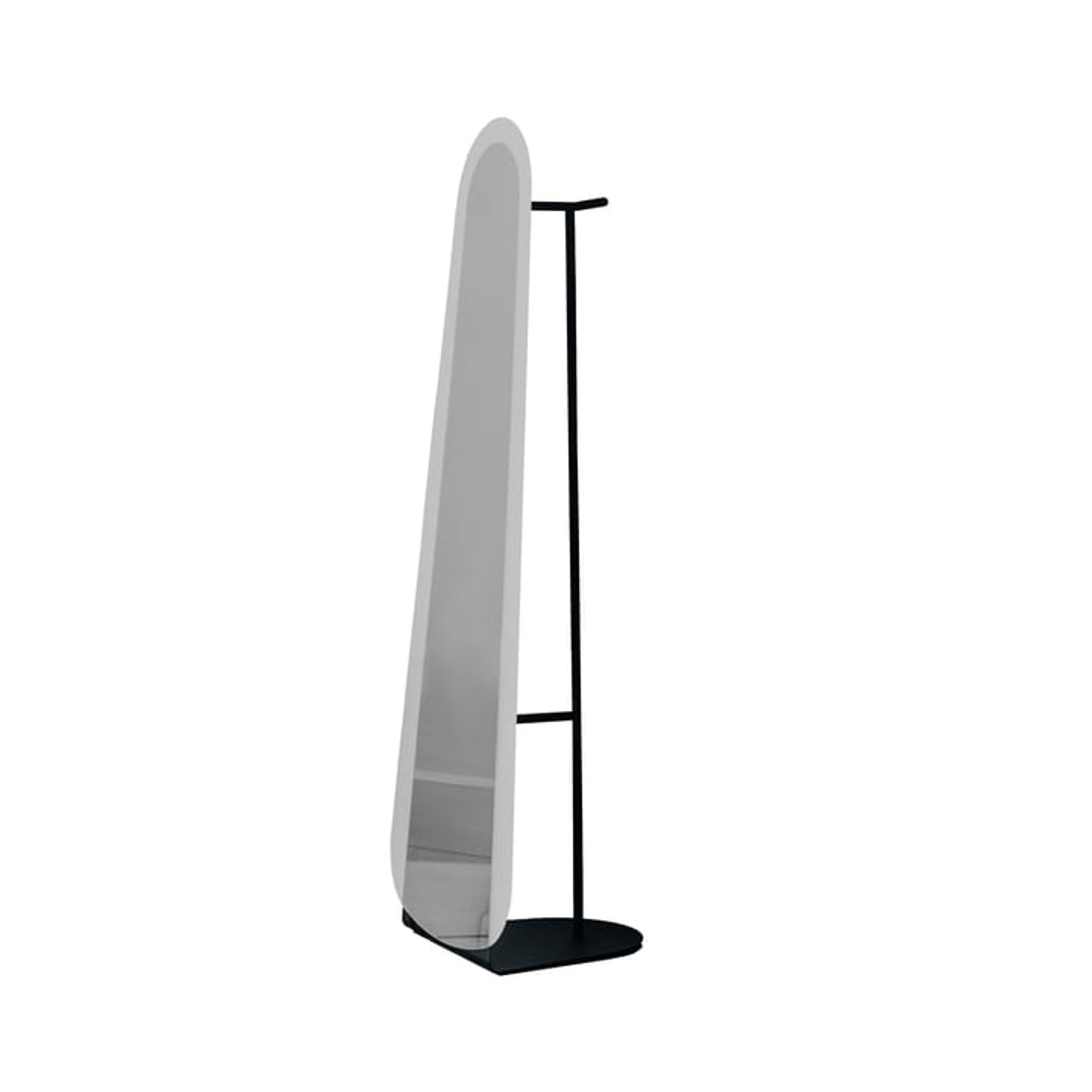 Silmiä hivelevässä Clessidra-peilissä on kaunis mattapeilipintainen koristereuna. Peilin takapuolella on vaateripustin.