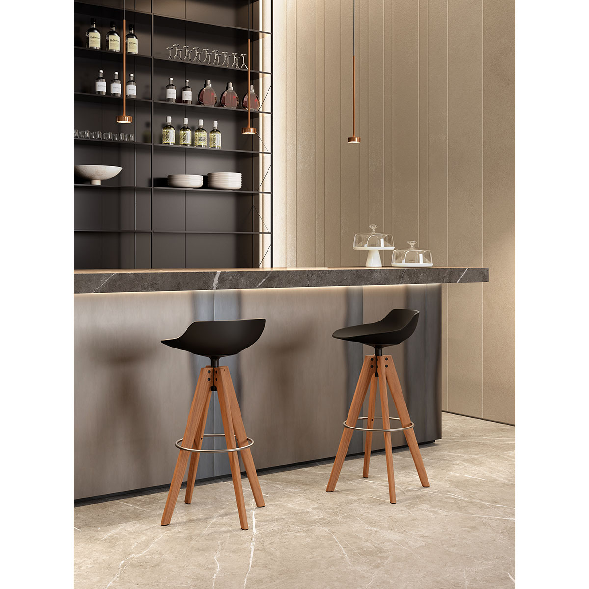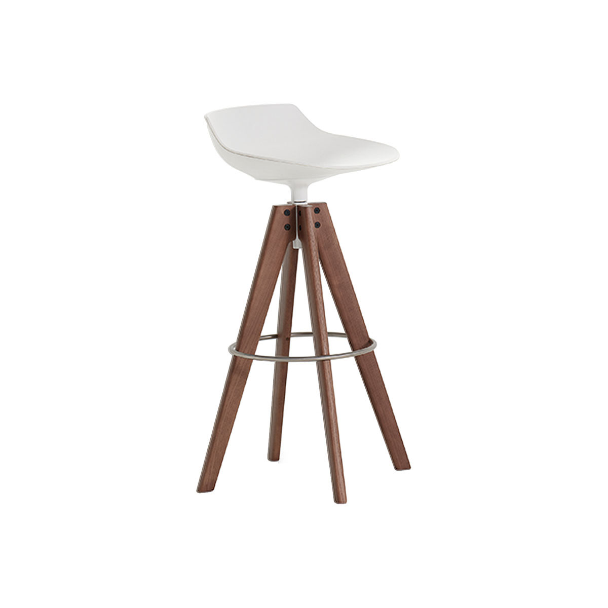 MDF Italian valmistamaa Flow-istuinsarjaa täydentävät eri korkuiset baarituolit, joilla on merkittävä vaikutus tilan ilmeeseen ja mukavuuteen. Istuimen ulko-osa on saatavana mattavalkoisena ja mustana polyuretaanina. 4-jalkaisella puujalustalla istuinkorkeudet ovat 44 cm, 65 cm ja 78 cm. Mattavalkoisella tai mustalla kelkajalustalla istuinkorkeudet ovat 65 cm ja 78 cm. Valinnainen verhoiltu istuinpehmuste on valittavissa valmistajan kangas- ja nahkavalikoimasta. Alkaen-hinta on laskettu aloituskuvan baarituolille 4-jalkaisella puujalustalla.