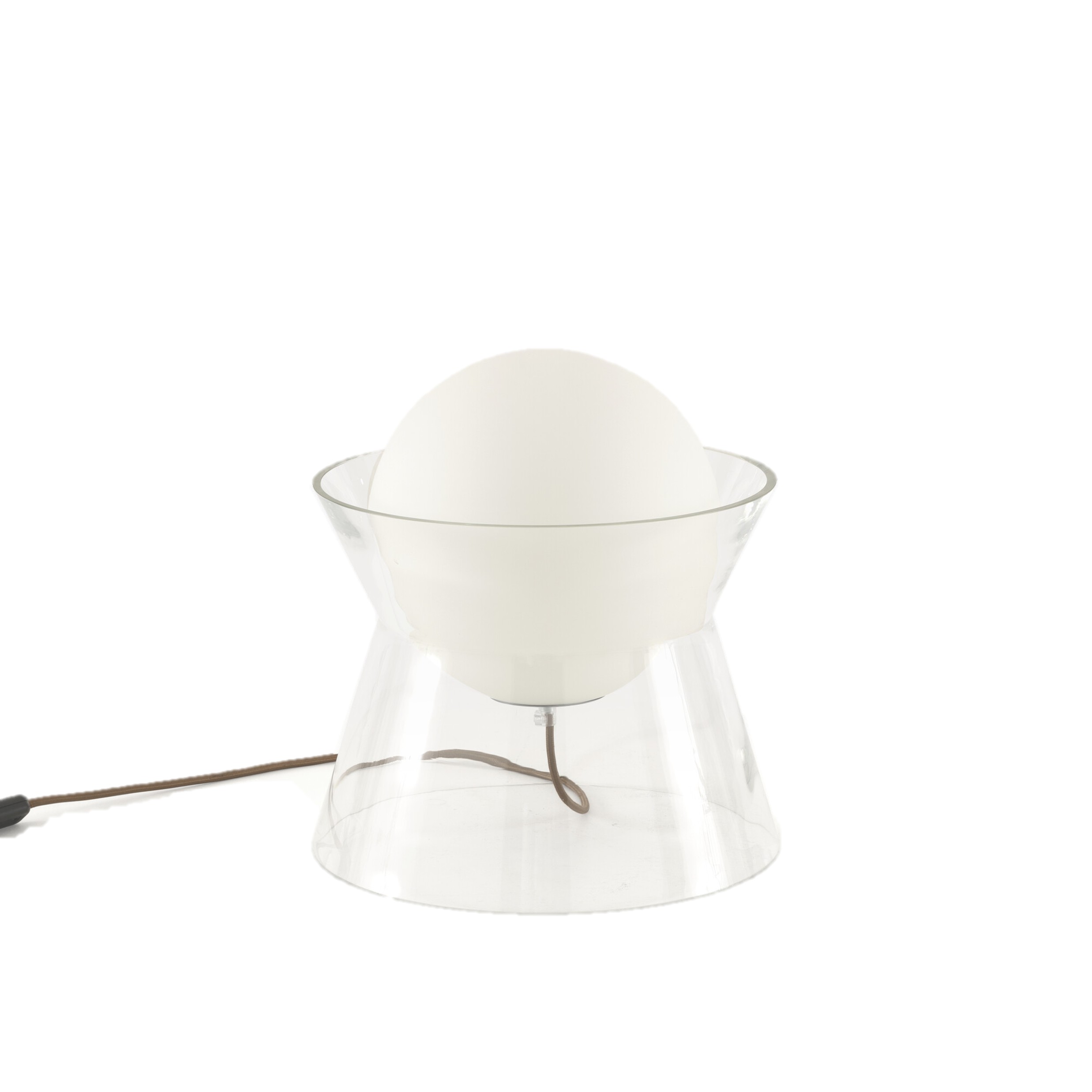 UusiFrom the Moon -pöytävalaisin on silmiinpistävä luomus, joka yhdistää harmonisesti ajattomat muodot ja hillityn eleganssin. Kuuta muistuttava ja opaalilasista valmistettu valoisa pallo näyttää leijuvan painottomasti kartiomaisen jalustan yläpuolella. Jalusta on venetsialaisten lasitaiteilijoiden huolellisesti valmistama suupuhalletusta lasista. Pöytävalaisimen koko on ø 34 x k. 36 cm.