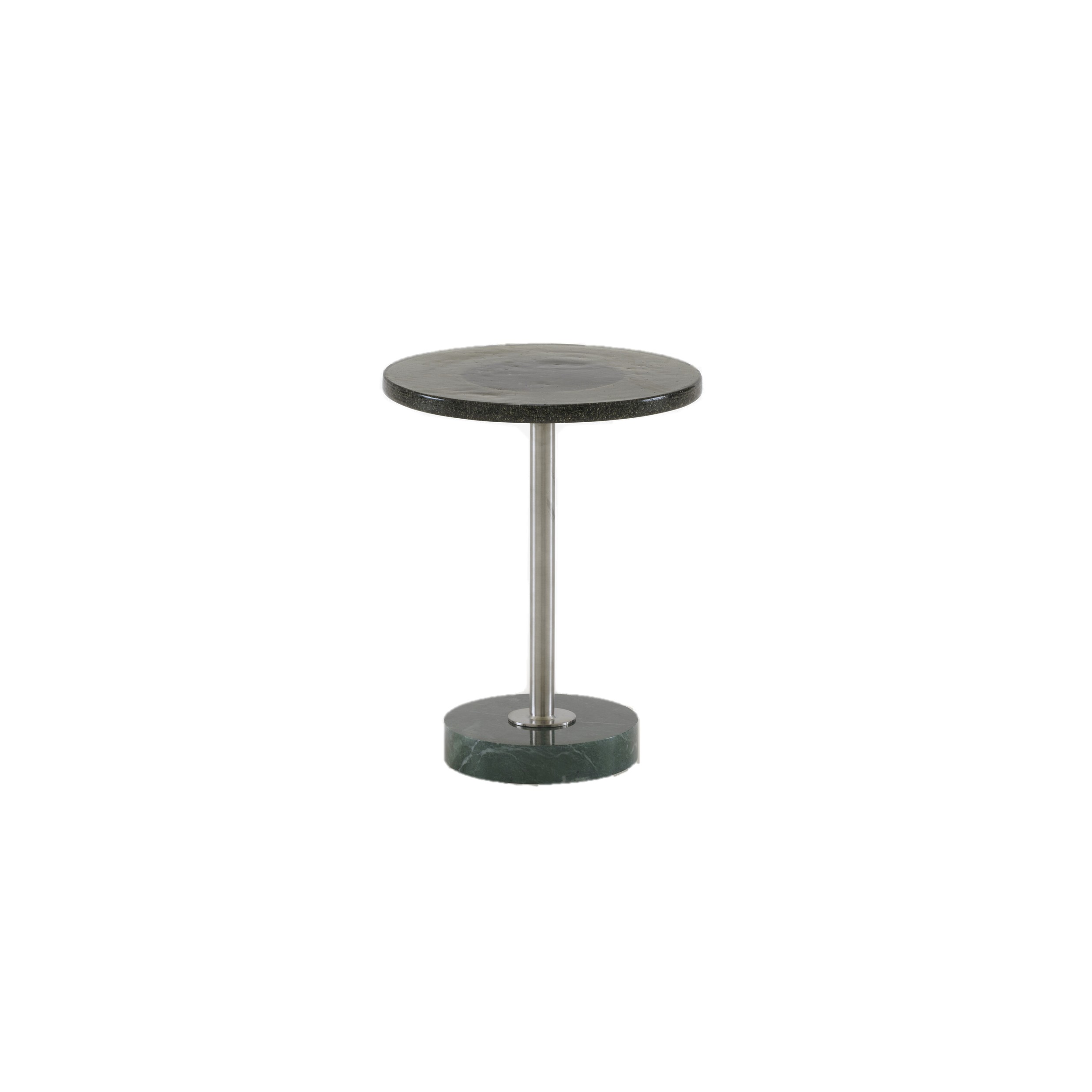 Glastone on sivupöytä, jossa on vihreäksi sävytetty kuplalasikansi, vihreä Rajasthanilainen kiillotettu marmorijalka ja satiinipäällysteinen ruostumaton teräsputki. Sivupöydän halkaisija on 31,5 cm ja korkeus on 40 cm.