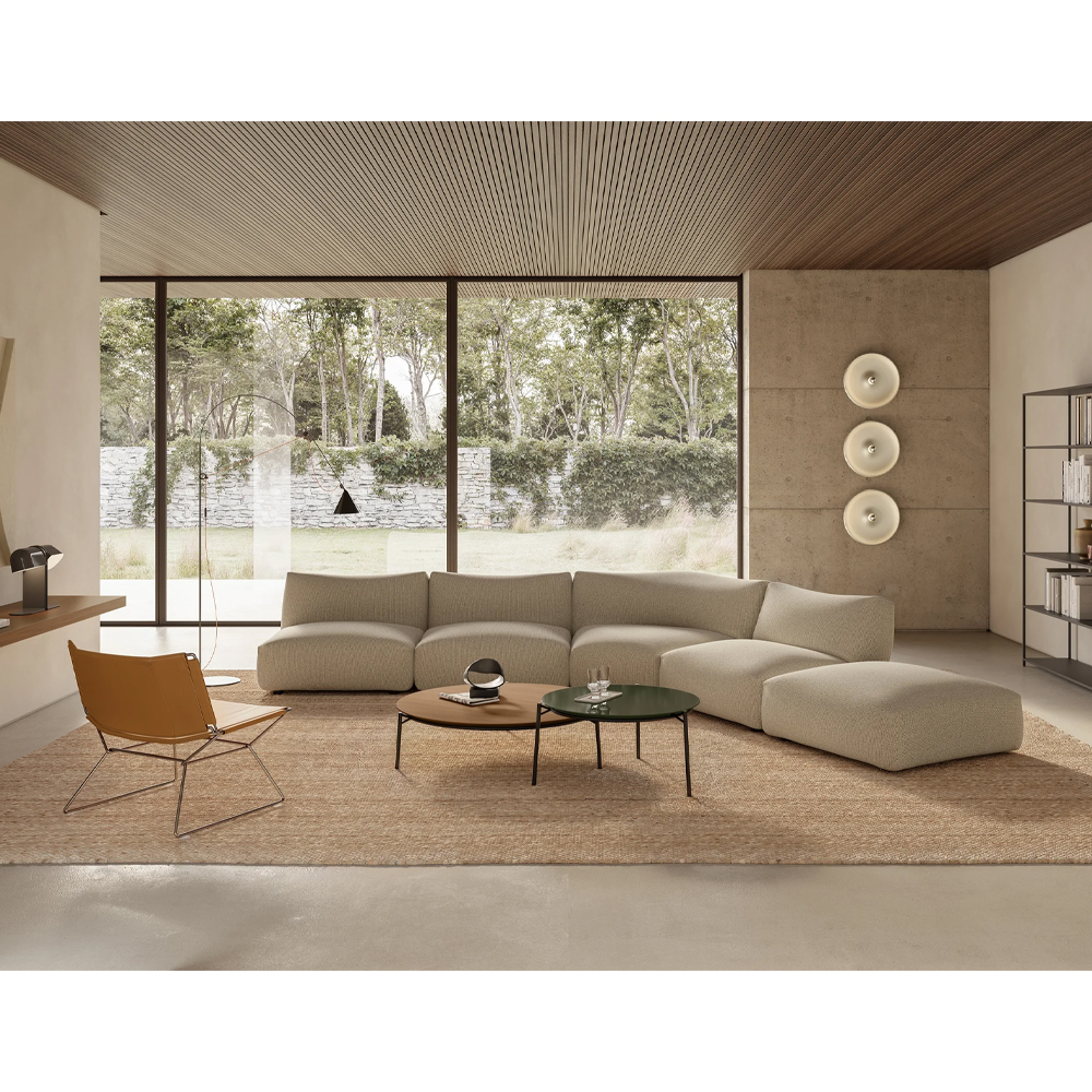 UusiJean Marie Massaud’n suunnittelema Goom on näyttävä, painovoimasta inspiroitunut moduulisohva, joka yhdistää jämäkät linjat ja äärimmäisen pehmeyden. Tyynyjen korostetut reunat luovat kevyen, leijuvan ilmeen ja ovat koko malliston tunnusmerkki. Goom on modulaarinen järjestelmä, johon kuuluu istuinmoduuli, lepotuoli, kaksi kulmamoduulia ja kaksi rahia. Käsinojia voi lisätä tarpeen mukaan, ja kaikki osat... Lue lisää