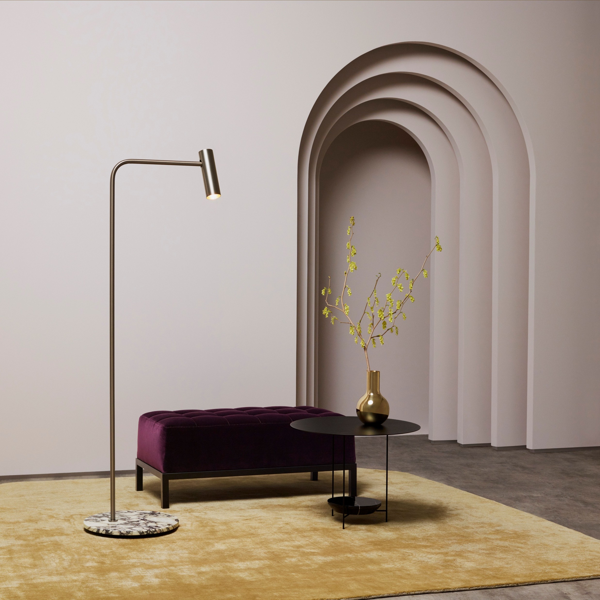 Belgialaisen suunnittelijan Michael Verheydenin suunnittelema Heron valaisin on minimalistinen, ajaton ja moderni. Heron lattiavalaisimessa on hillittyä ylellisyyttä, joka saavutetaan laadukkaan jalometallityön viimeistelyn ja käsityötaidon ansiosta. Helposti siirrettävän varjostimen ansiosta voit kohdistaa valaistuksen juuri sinne, missä sitä tarvitaan, joten se sopii täydellisesti yöpöydän, työpöydän ja sohvan viereen. Runko on saatavilla satiinimessingistä tai pronssista valmistettuna ja jalusta on saatavilla samoista metallin sävyistä tai marmorikivestä. Saatavilla myös pöytävalaisimena.