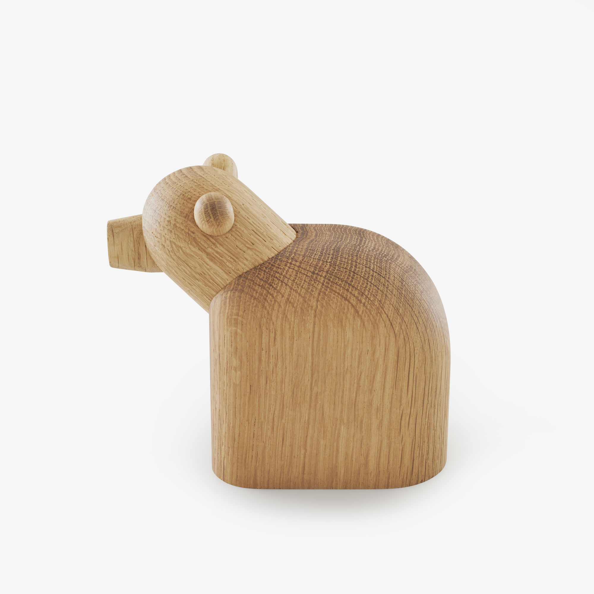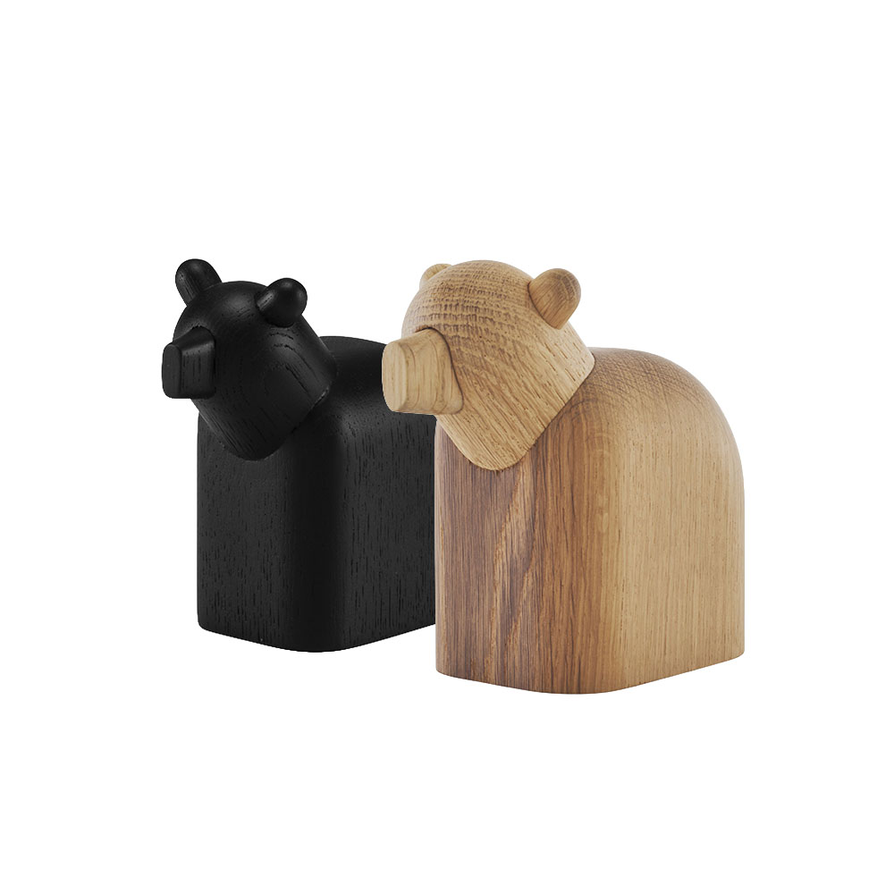 Usein suojelua, viisautta ja luontoa symboloiva Karhu on massiivitammesta valmistettu, pehmeistä ja yksinkertaisista muodoista koostettu sisustuselementti. Sopii niin itsenäiseksi koristeeksi, kuin laajempaan sisustuskokonaisuuteen. Saatavilla kahdessa värissä: Black ja Natural. Koko: L 7 x S 14 x K 12.8 cm
