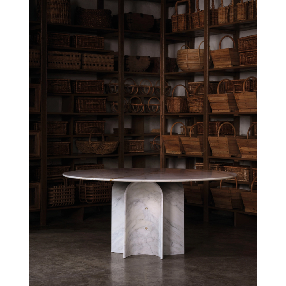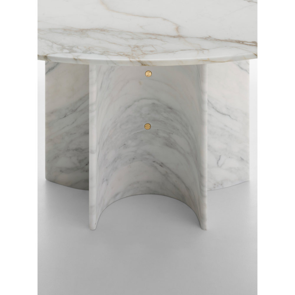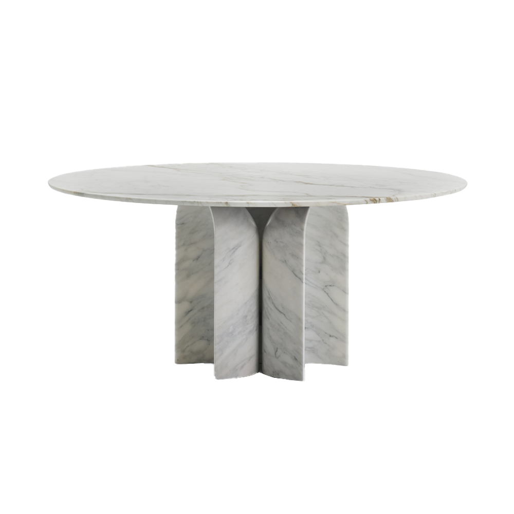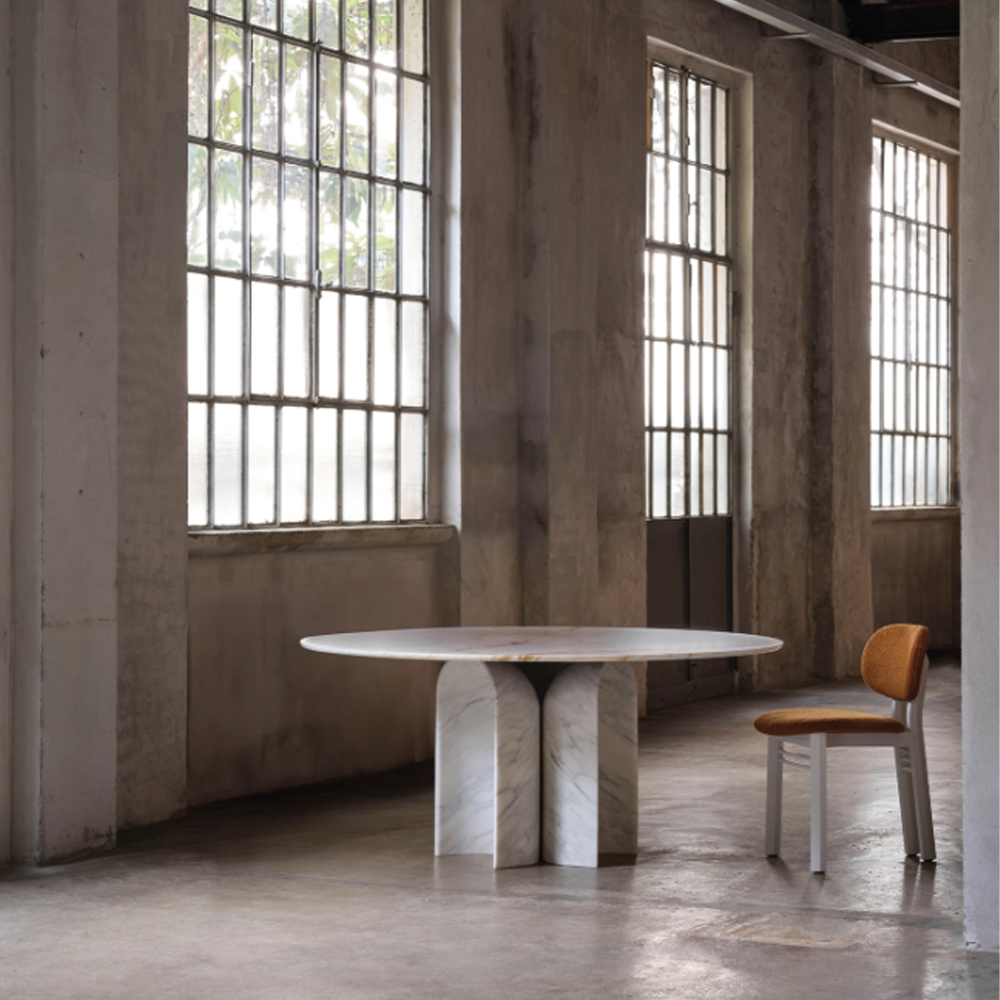 Le Cupole -ruokapöytä on yhdistelmä geometristä selkeyttä ja veistoksellista eleganssia. Le Cupole tekee vahvan visuaalisen vaikutuksen. Kolmesta marmorikupolista koostuva jalusta (italiaksi cupole) kannattelee pöytälevyä arkkitehtonisella tarkkuudella. Muotojen kaarevuus ja pehmeät linjat luovat vaikutelman keveydestä ja liikkeestä. Jalkojen messinkiset yksityiskohdat viimeistelevät kokonaisuuden hienostuneesti. Le Cupole on saatavilla vaaleassa Calacatta Oro- ja mustassa Nero Marquinia -marmorissa.