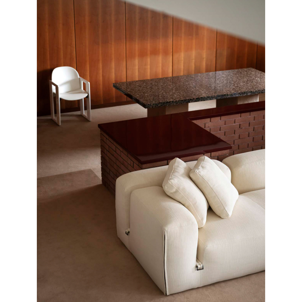 Mario Bellinin Le Mura sohva edustaa manifestia radikaalista muotoilusta 70-luvulla. Tuloksena on ehtymättömän vahva kaluste, joka ei kulu edes 50 vuoden jälkeen. Tämä klassikko palautui tuotantoon vuonna 2022 ja mallisto laajeni vuonna 2025 isommaksi XL-versioksi; istuinsyvyyttä on kasvatettu, ja yhdessä uusien, pehmeiden, vapaasti liikuteltavien irtotyynyjen kanssa se tuo uuden, intiimimmän ja kodikkaamman ulottuvuuden nauttia mukavuudesta ystävien ja perheen seurassa. Le Mura XL korostaa myös alkuperäisen muotoilun monipuolisuutta lisämoduuleilla – kulmapalalla sekä divaanilla – jotka mahdollistavat suurempien kokoonpanojen luomisen. Le Mura ei ole pelkkä sohva – se keskittyy modulaarisuuteen, mikä käy ilmi jo nimestä. Se viittaa roomalaisten muurien suuriin kiviin, joita voidaan sohvaelementtien tavoin loputtomasti liittää yhteen erilailla sopien erikokoisiin tiloihin. Alkaen-hinta on laskettu 2 moduulin kokonaisuudelle – divaanipalalle ja 30° keskipalalle.