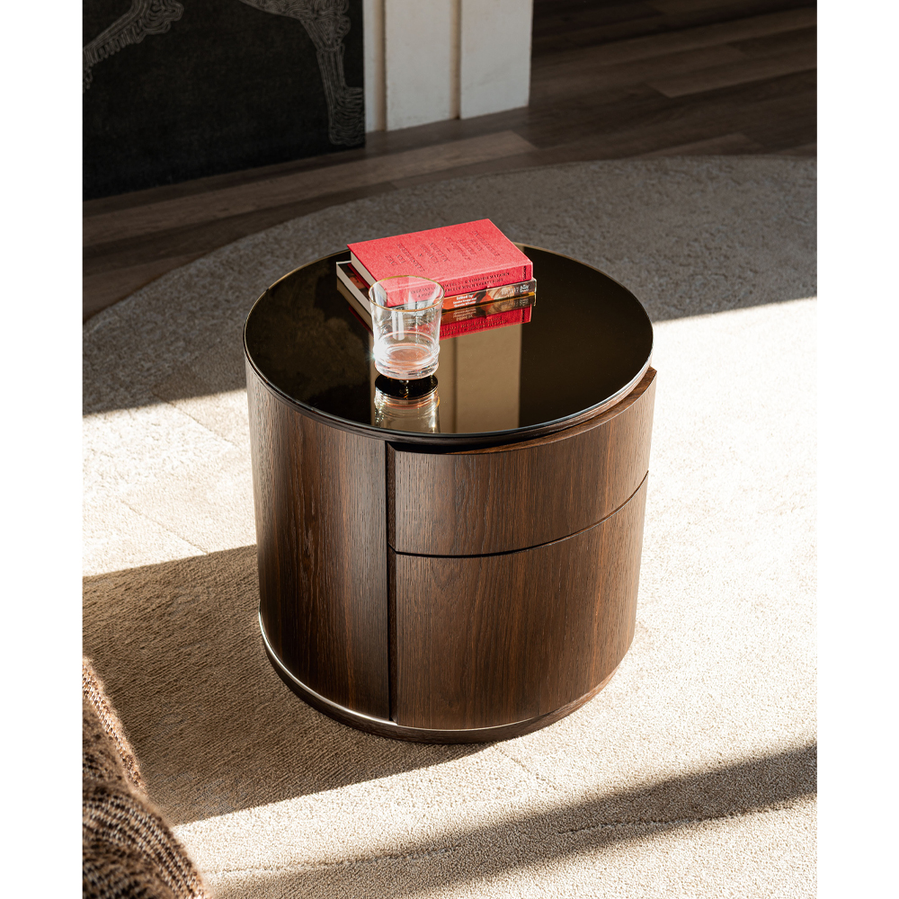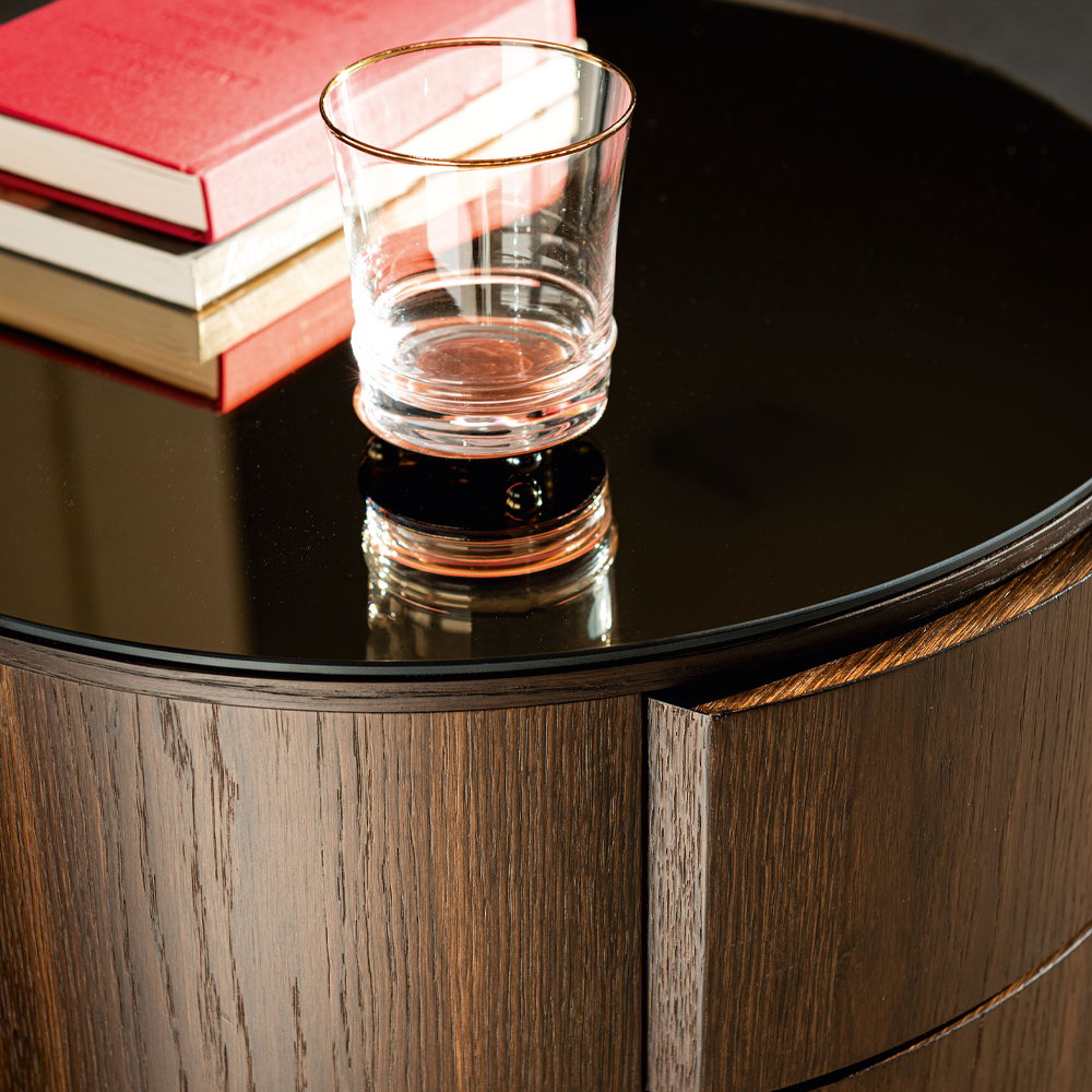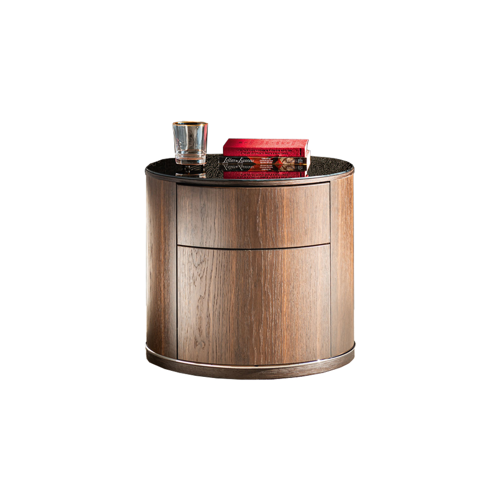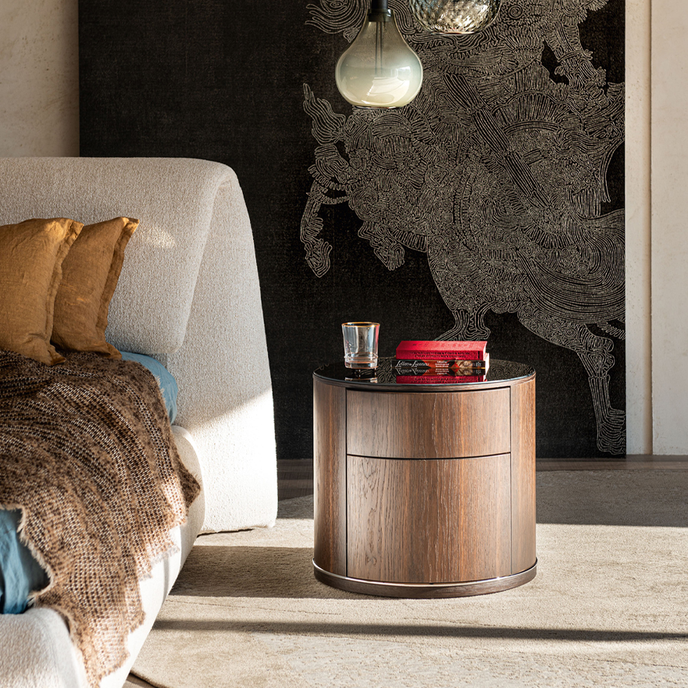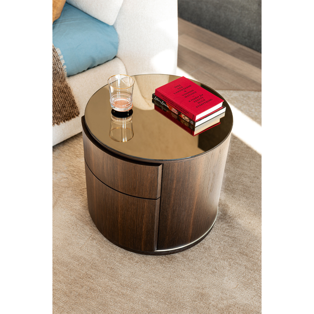 Lido on tyylikäs ja moderni yöpöytä, joka yhdistää laadukkaat materiaalit ja hienostuneen muotoilun. Sen runko ja kaksi vetolaatikkoa on valmistettu Canaletto-pähkinäpuusta tai poltetusta tammesta , ja yläosa on pronssinväristä peililasia, jota korostaa kromattu kehys. Tämä huonekalu tuo makuuhuoneeseen ripauksen ylellisyyttä, ajattomuutta sekä toiminnallisuutta.