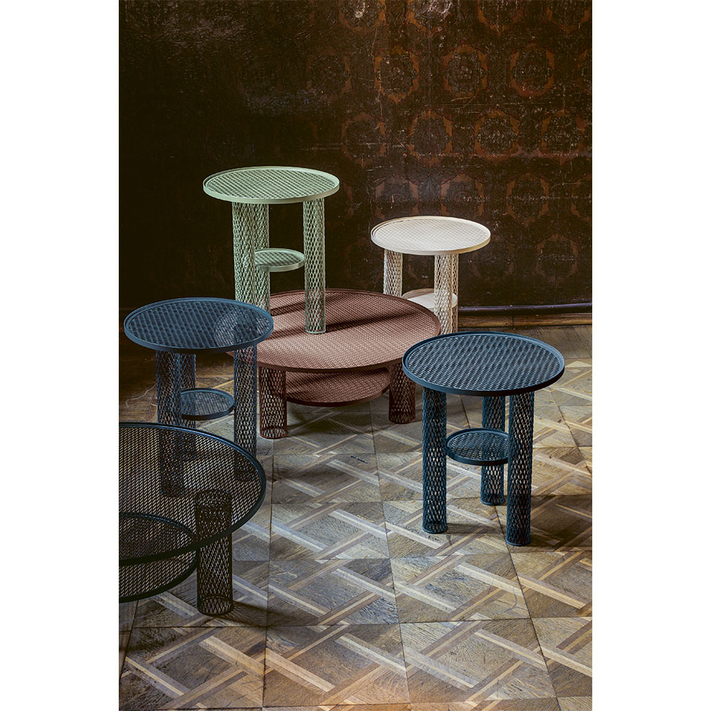 Net on Moroson sohva-/sivupöytä, jonka on suunnitellut Benjamin Hubert. Net on valmistettu teräsverkosta, joka on jauhemaalattu. Sohvapöydän koko on Ø 70 cm ja k.29 cm, ja sivupöydän koko on Ø 40 cm ja k.46 cm.