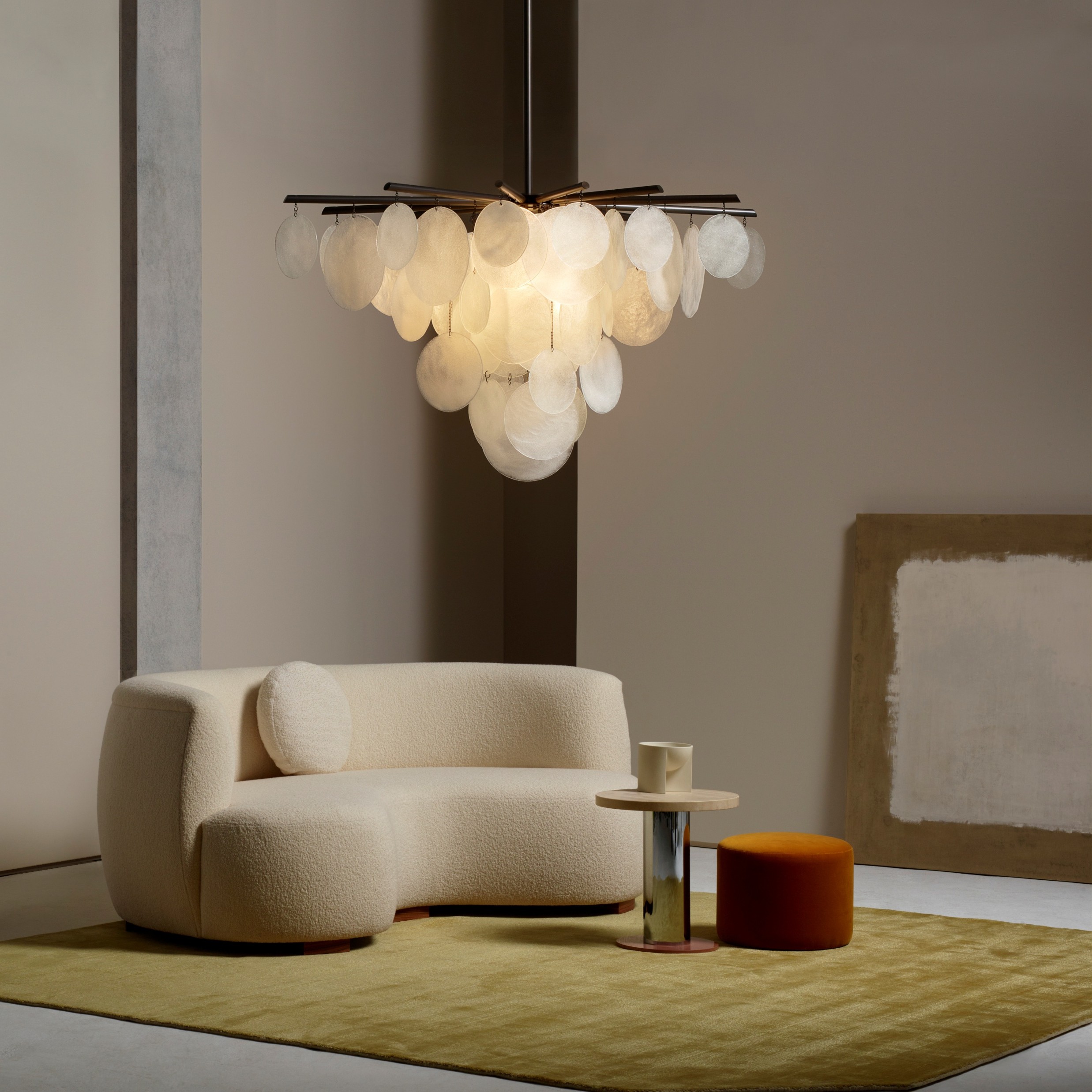 Nimbus kattokruunu on katseenvangitsija, joka lumoaa näkijänsä. Jokainen lasilevy on ainutlaatuinen ja taidokkaasti käsintehty. Nimbus kattokruunusta on saatavilla kolme eri kokoa ja niitä voidaan käyttää yksinään olohuoneen tai makuuhuoneen keskellä tai useita yhdessä valaisemaan pidempiä pöytiä ja keittiösaarekkeita.