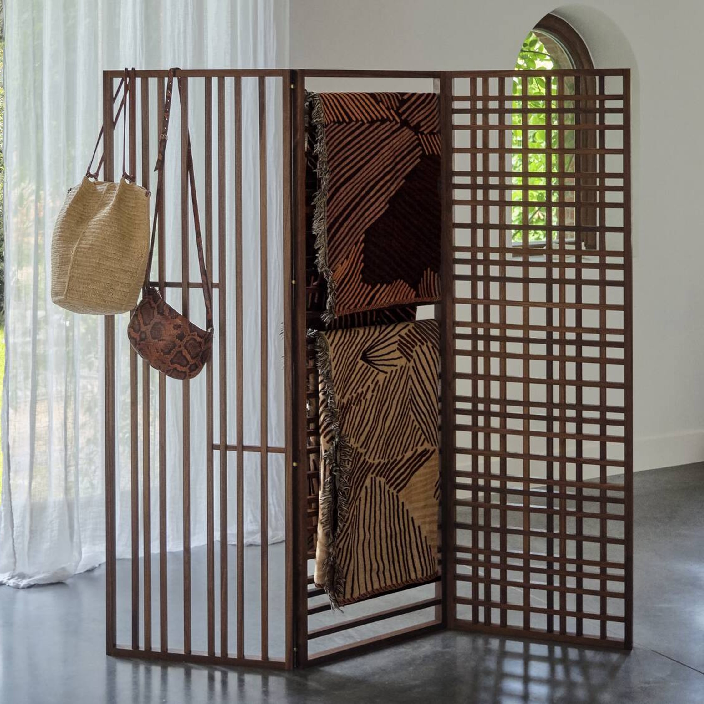 Paravent on kaunis käsityönä tehty ja massiivipähkinäpuusta valmistettu kolmipaneelinen sermi. Yksityisyyden lisäämiseksi jokaisen paneelin muotoilu on erilainen, mutta suljettuna kahden paneelin muotoilusta tulee identtinen… taianomaista. Sermin koko on 153 x 3 x 156 cm.