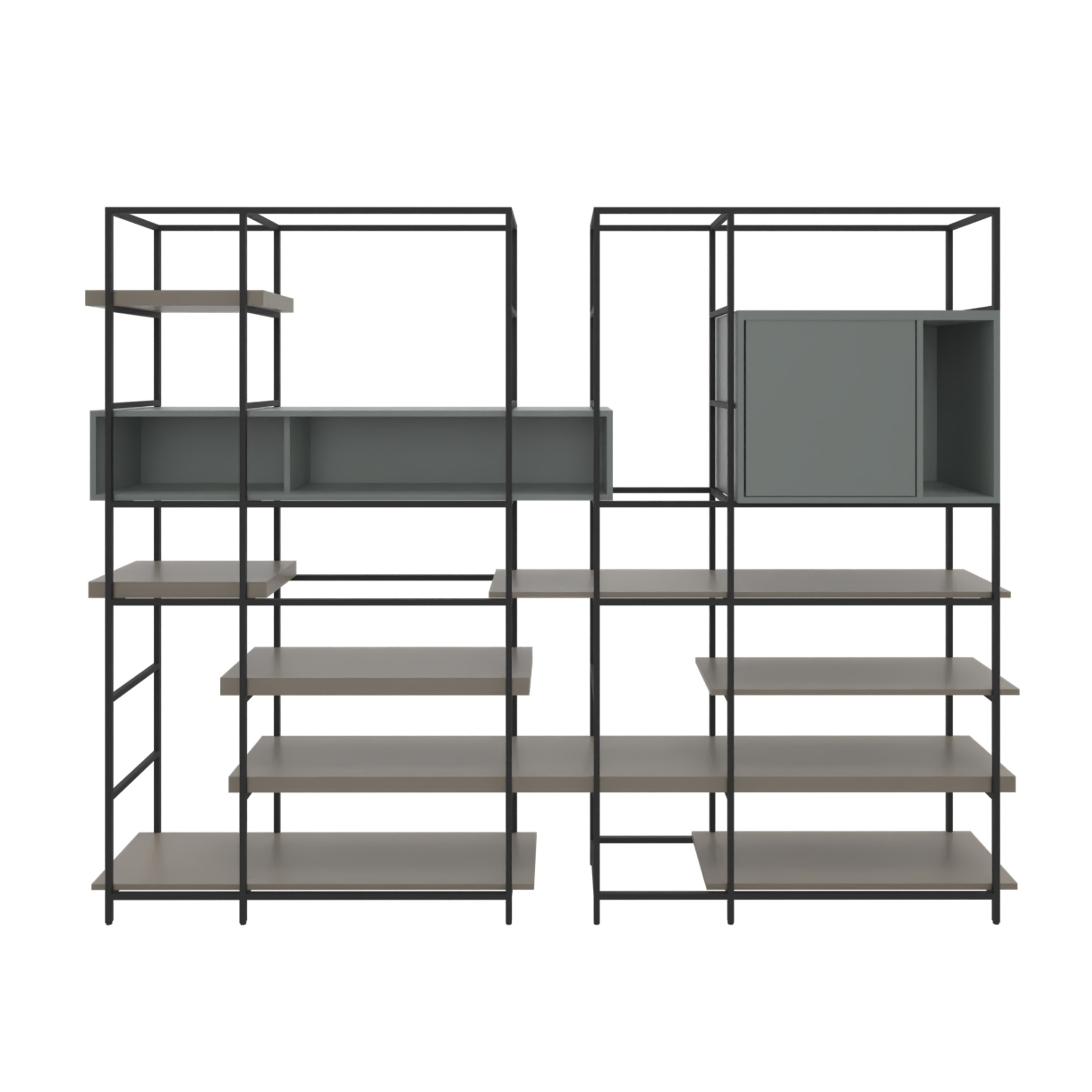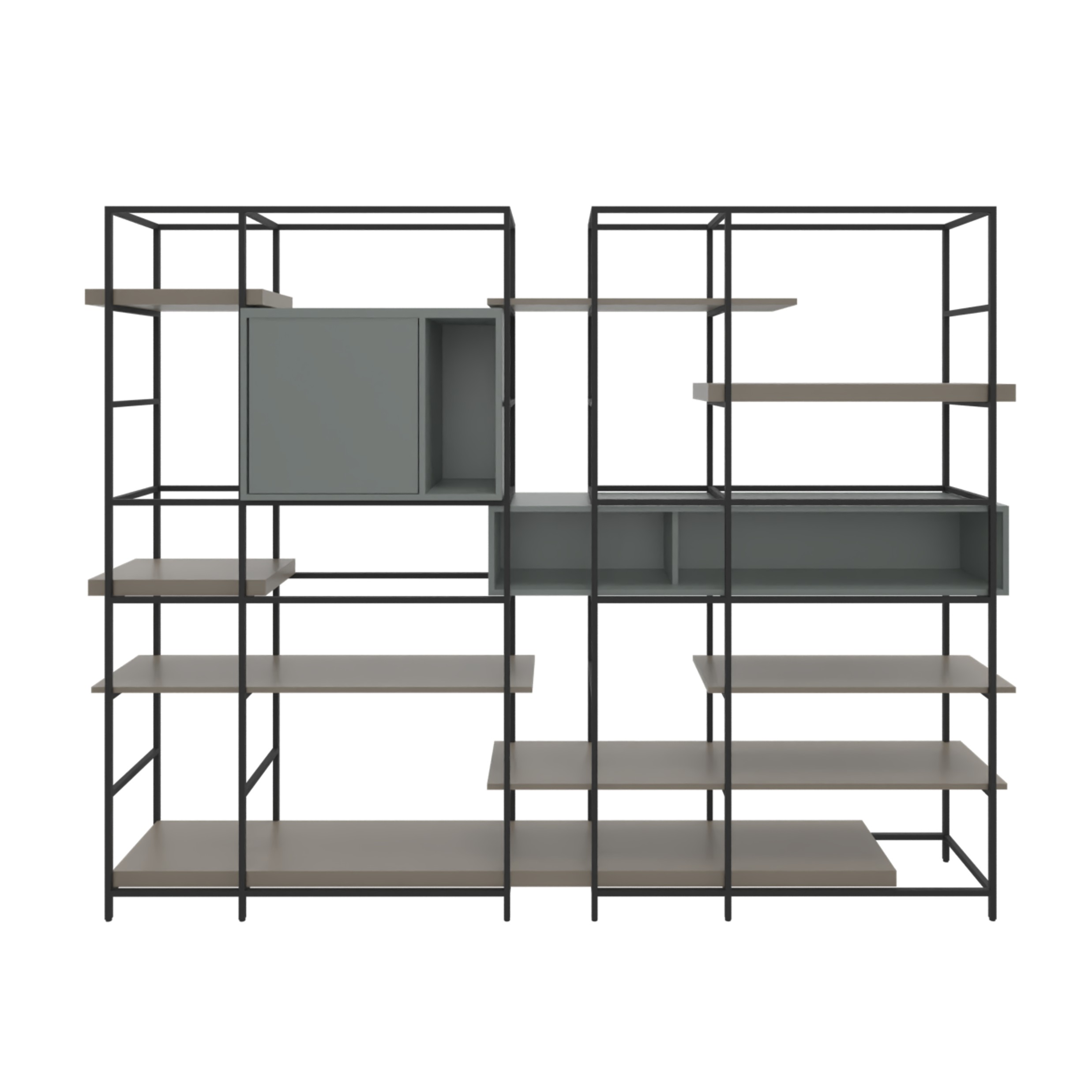 Materiaali, väri: musta metallirunko: 713 Lavagna, MDF-hyllyt: maalattu sävyyn 804 Pepe ja säilytyslaatikot: maalattu sävyyn... Lue lisää