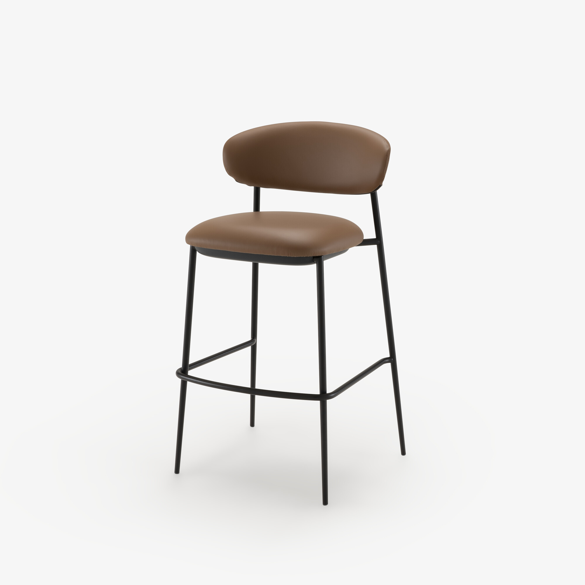 Skiaccio on ohuella ja levenevällä metallijalustalla varustettu baarituoli, sen muotoilussa yhdistyvät eleganssi ja mukavuus. Baarituolin istuinmukavuus on optimaalinen kaarevan selkänojan tarjoaman ympäröivän tuen ansiosta. Skiaccio-baarituoli valmistetaan tilauksesta useilla eri kankailla sekä kahdessa eri nahan sävyssä Dako Brun Foncé ja Dako Marron. Jalusta on mustaksi lakattua teräsrunkoa. Baari tuolista on kaksi... Lue lisää