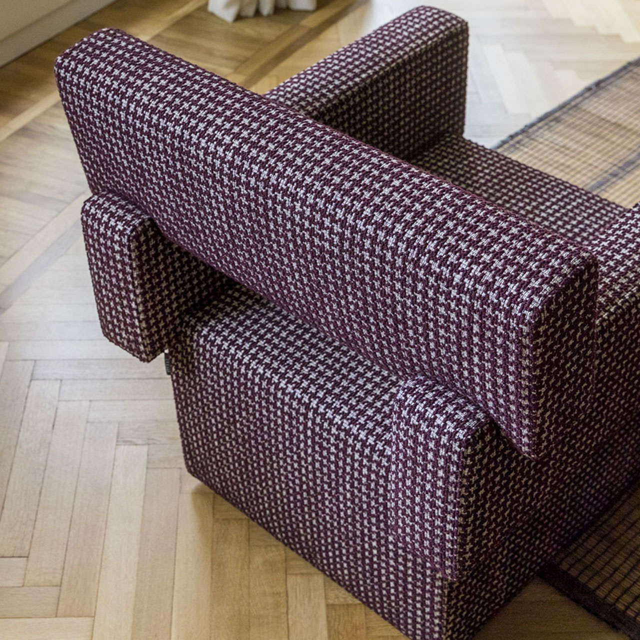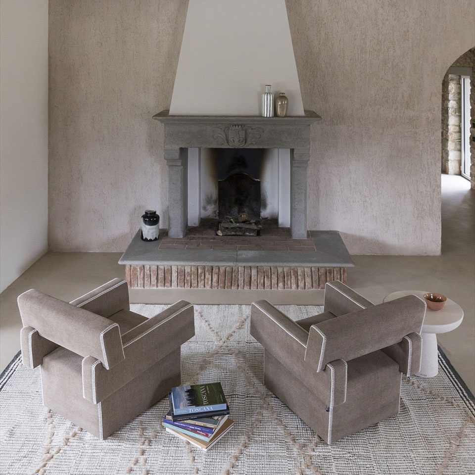 Skyfall nojatuoli on kokonaan verhoiltu kiinteällä päällisellä. Nojatuolin osien leikki antaa tuotteeseen mielenkiintoisen ja modernin ilmeen. Tuote on pyynnöstä saatavilla punto cavallo -ompeleilla. Nojatuolin mitat 74x76x75 cm.