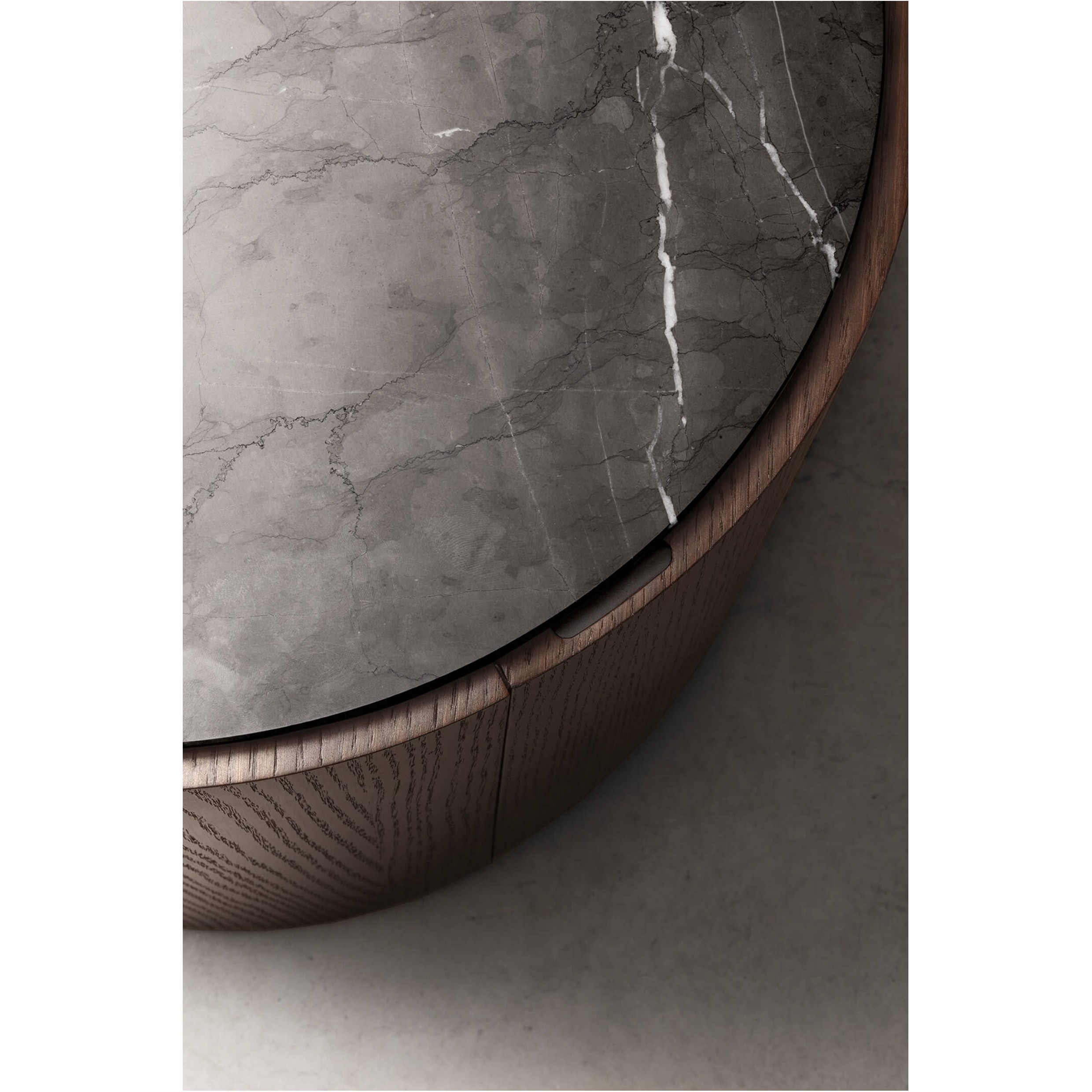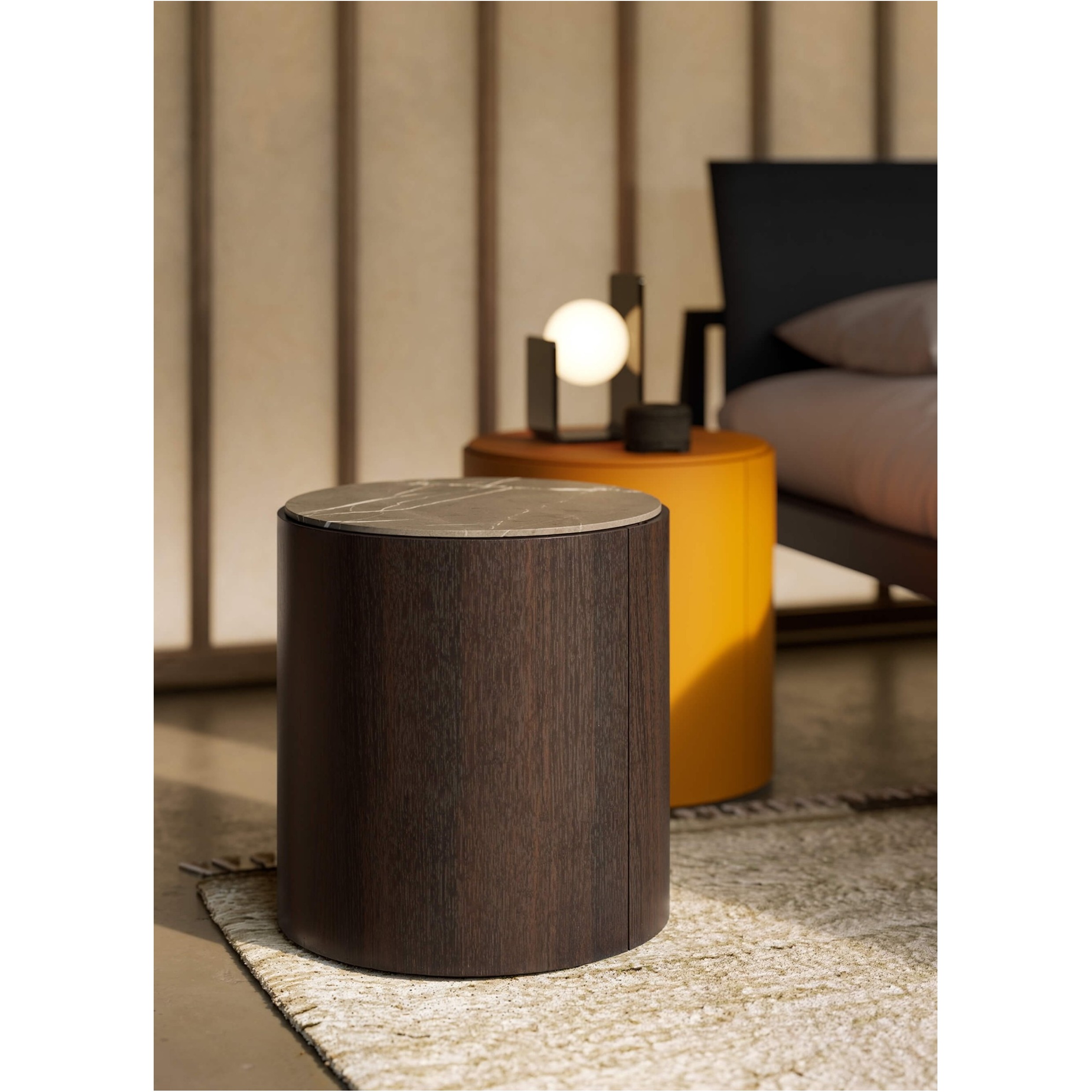 Top on yksinkertainen, lieriömäinen sivupöytä, jonka puhdas, minimalistinen muotoilu luo ajattoman tunnelman. Monoliittinen ja yksivärinen Top-pöytä on varustettu kaarevalla ovella ja sisäpuolella pyöristetyllä hyllyllä. Runko on saatavana mattalakkattuna tai puuviilusta. Kansi on saatavana puuviilusta tai – elegantimpana vaihtoehtona – marmorista tai kivestä.