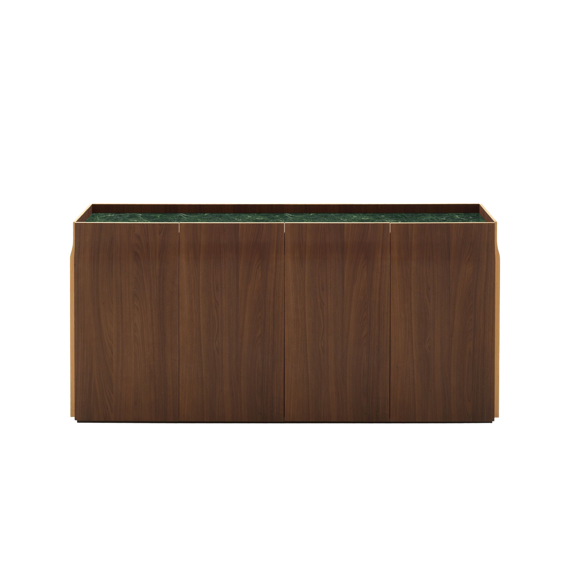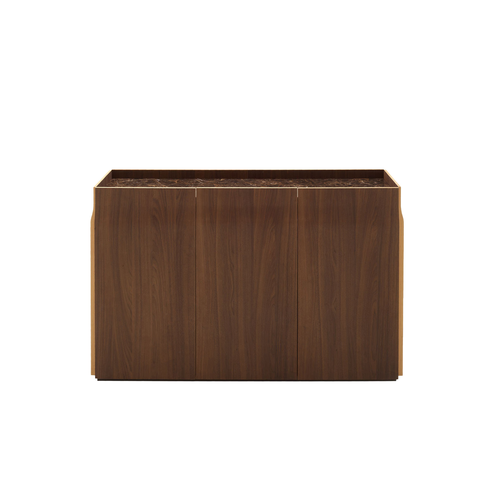 Eric Jourdanin suunnittelema Utopia-senkki edustaa tyylikästä ranskalaista muotoilua. Sen hienostunut muotokieli ja harkitut yksityiskohdat tekevät siitä katseenvangitsijan moderniin tai klassiseen sisustukseen. Utopia on saatavilla kahdessa eri koossa: 3-ovinen koko: L 156 x S 45 x K 98 cm sekä 4-ovinen koko: L 206 x S 45 x K 98 cm. Senkille tunnusomaista on doucine-muoto, jossa rakenne kapenee ylöspäin ja levenee alaspäin – se tuo kokonaisuuteen keveyttä, eleganssia ja persoonallisuutta. Etukulman viimeistelyssä tummaksi petsatun pähkinäpuun ja luonnonlakattuun kirsikkaan muodostama kontrasti korostaa senkin huolellista käsityötä. Kirsikan sävy toistuu ovien ja kaapin reunoissa. Kansi on valittavissa kolmesta ylellisestä vaihtoehdosta: Verde marmori, Emperador kivikansi tai valkoinen marmorivaikutteinen keraaminen kivikansi.